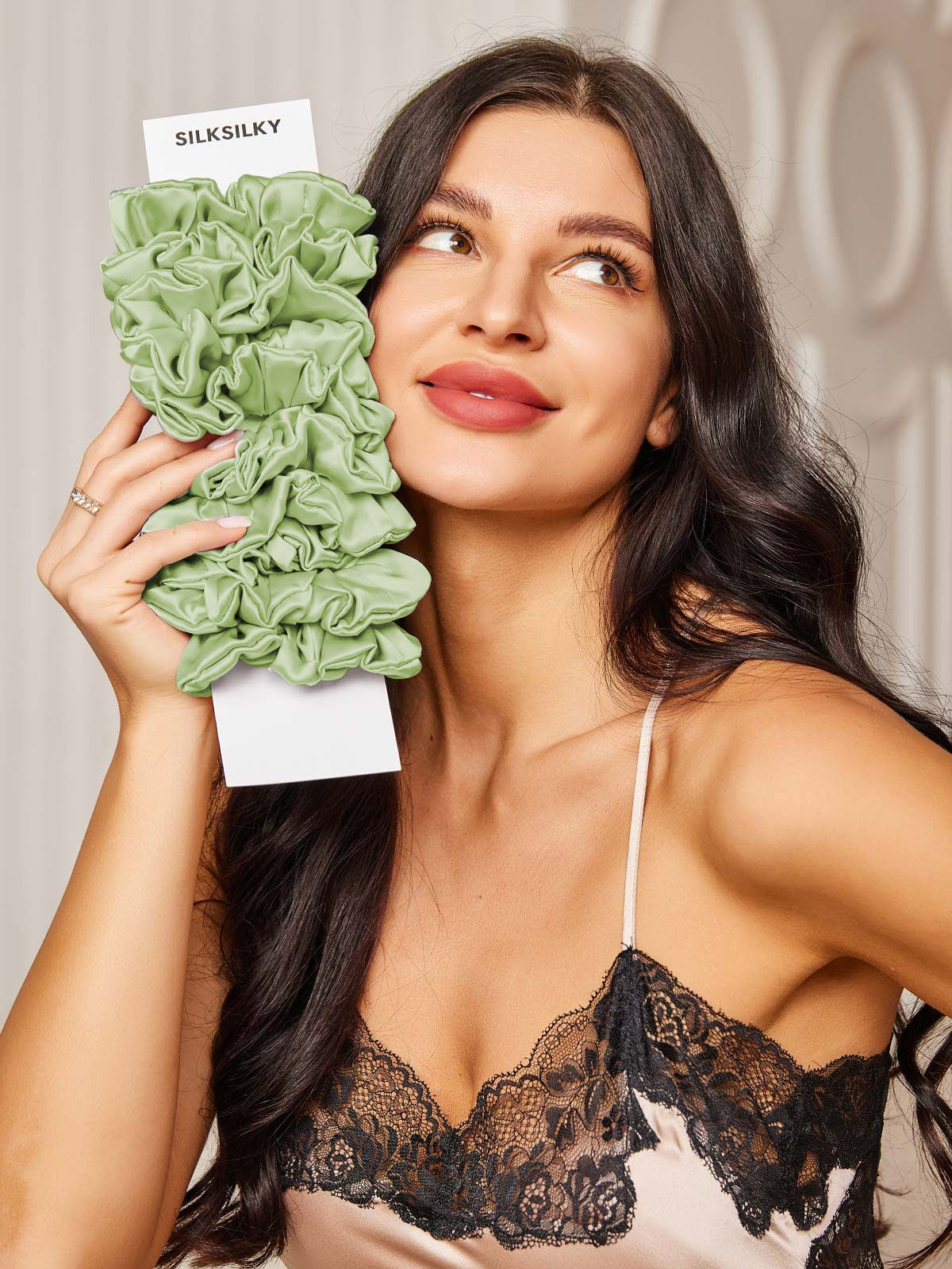 10 Kpl 100% Silkkiä Keskiyö Scrunchies - Tavallisia - 2cm