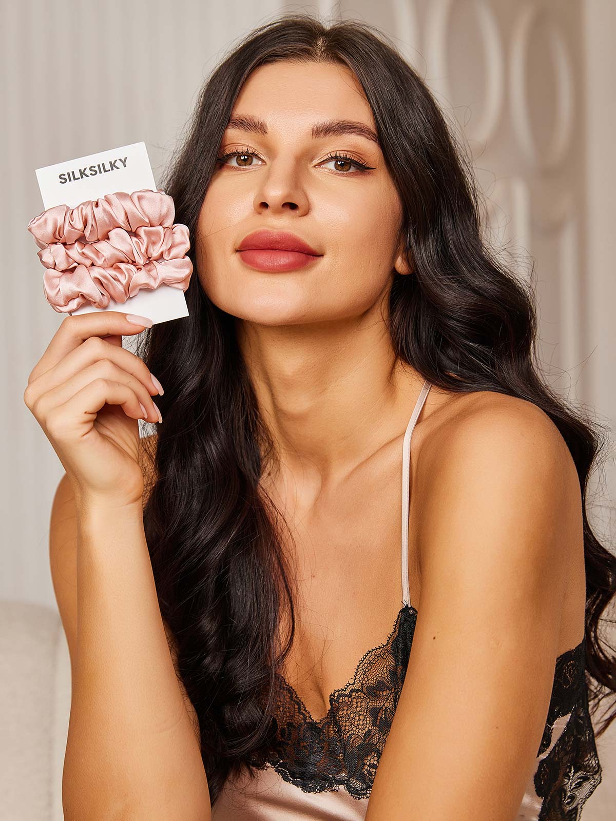 3 Kpl 100% Silkki Keskiyö Scrunchies - Tavallinen - 2cm