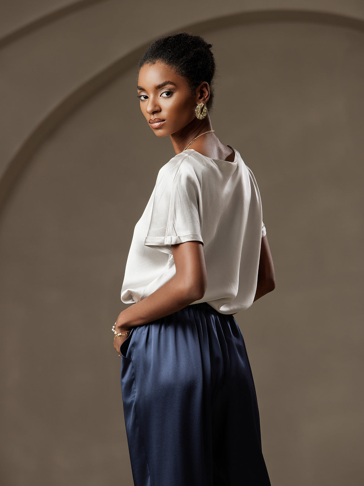 Gorgeous tee shirt. Yes, it really is silk. Feels like heaven against your skin. Well made, with no awkward seams or anything poorly done. I want to get one or two more, but need to budget for them. Well worth it.